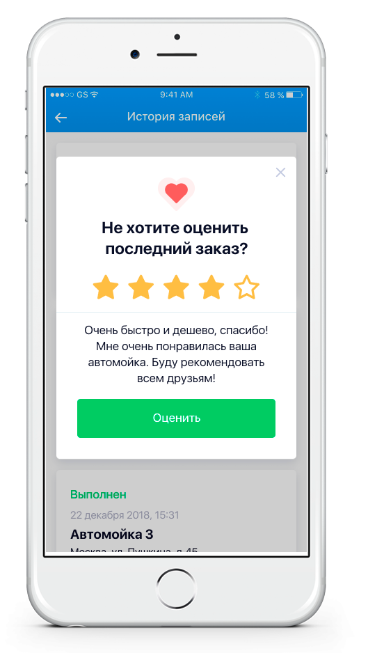 Ваши клиенты смогут записываться на автомойку через приложение в один клик. А бонусная система поможет привлекать новых клиентов без вложений в рекламу. Стоимость подключения опции – 990 руб/мес